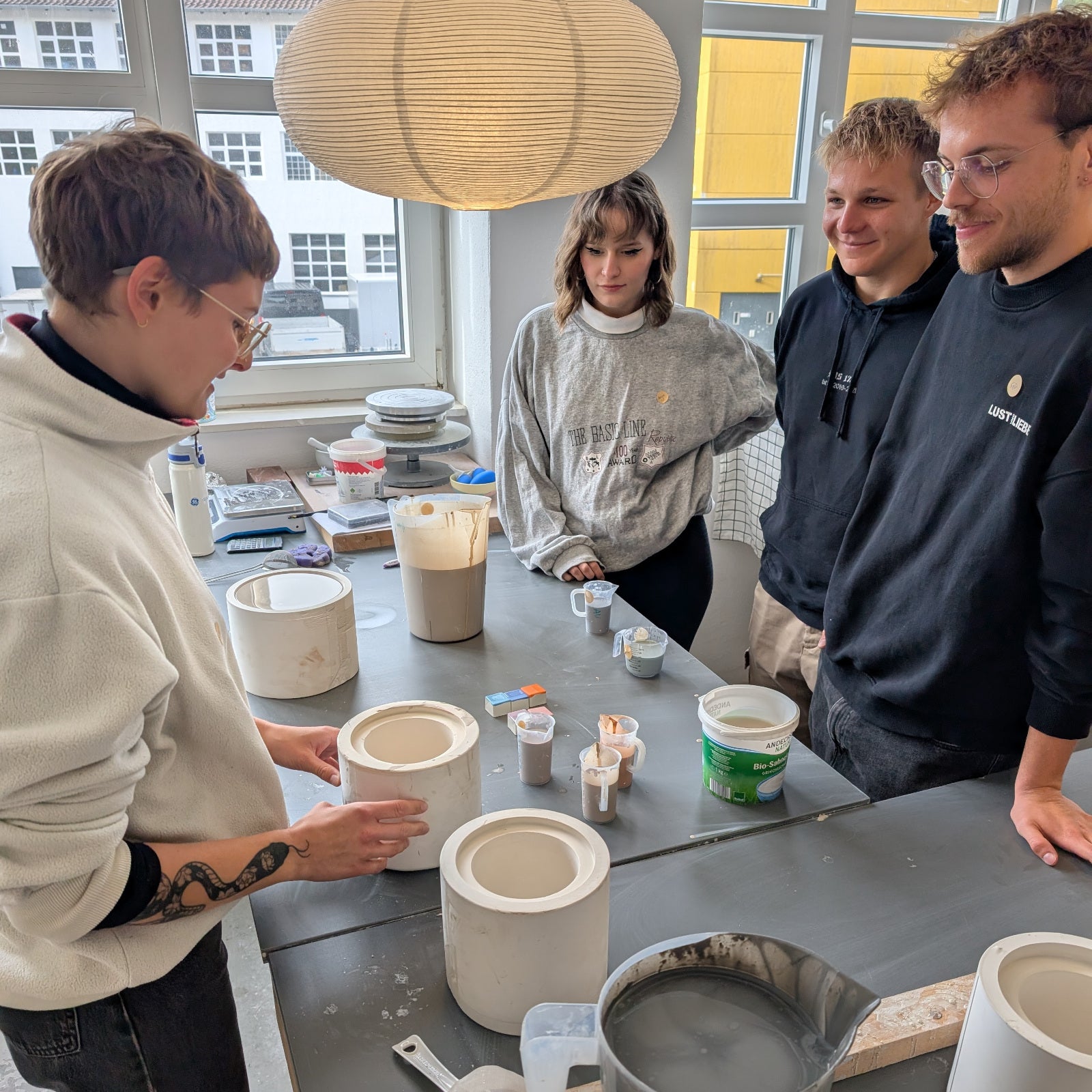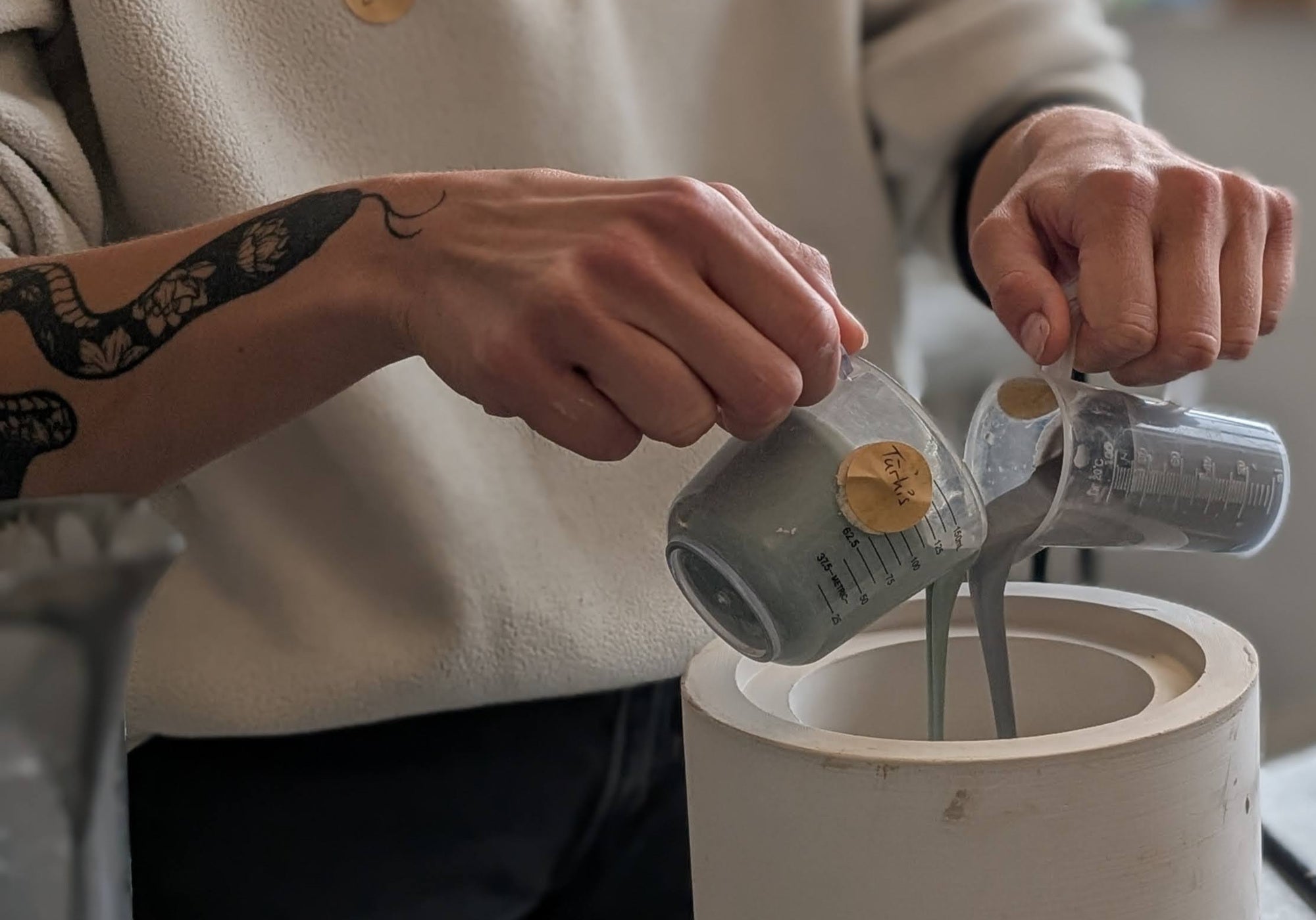 Ablauf: Einführung ins Material, gemeinsames Gießen deiner Stücke, Trocknen und Nachbearbeitung durch mich im Studio